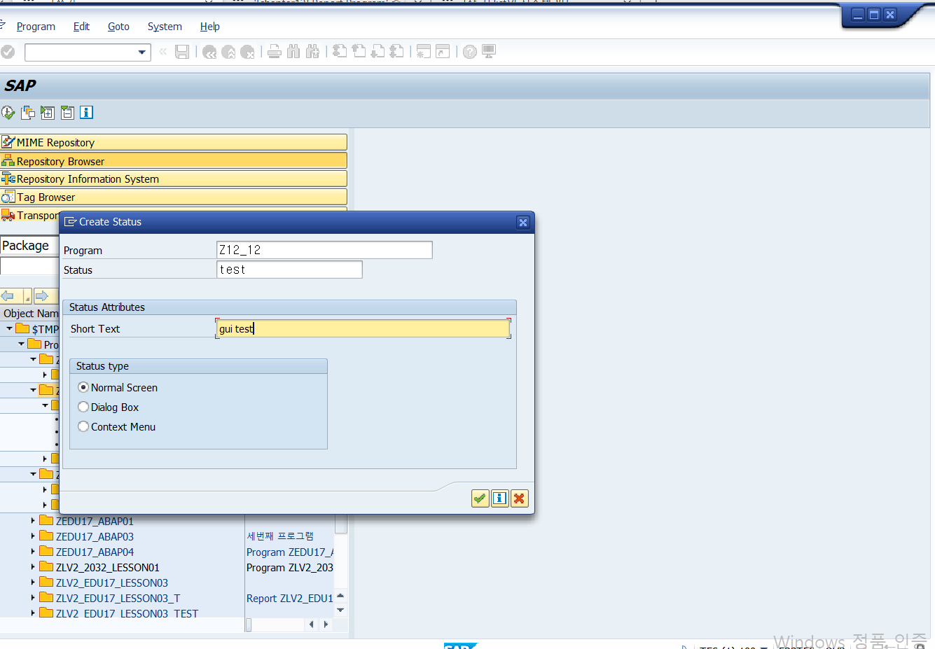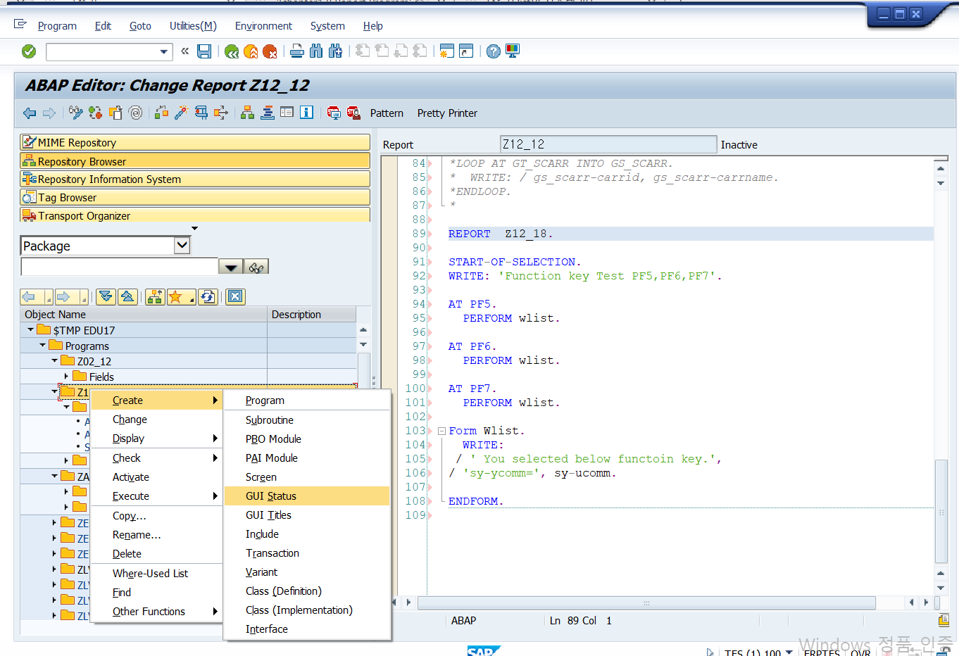 GUI STATUS는 ABAP 프로그램 영역과 독립적으로 존재하며,