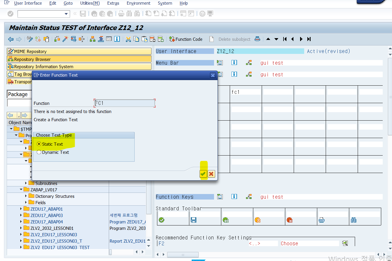 메뉴 페인터(T-CODE: SE41)에서 생성하여 화면에 동적으로 추가할 수 있다.