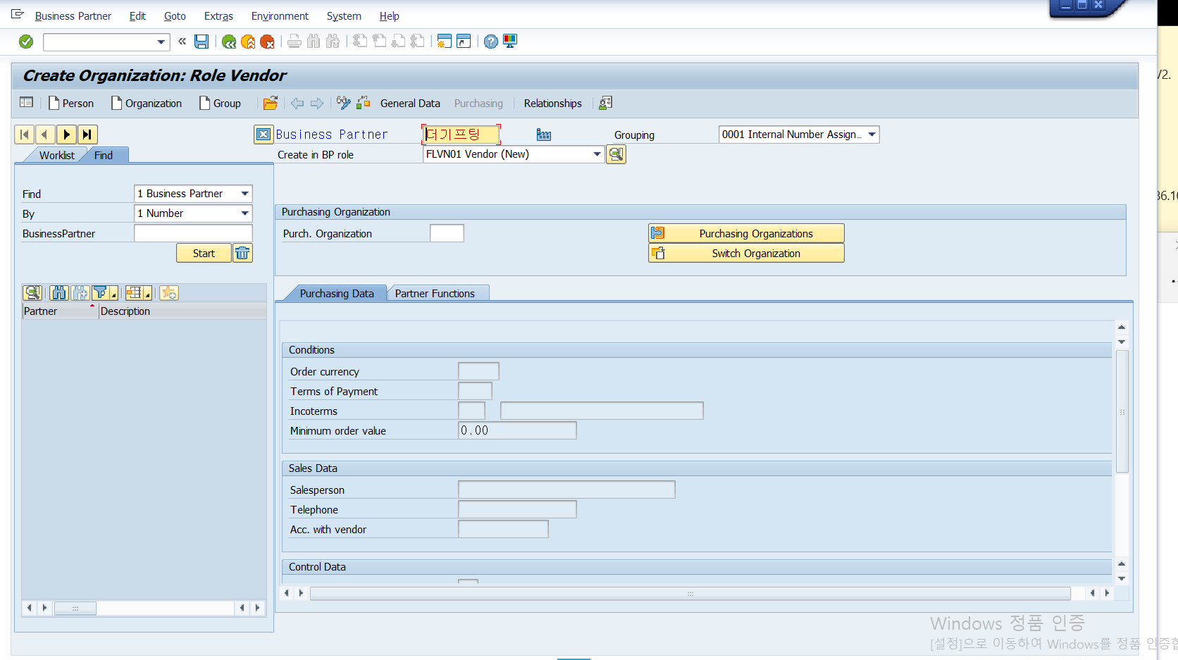 accounting data 입력시 에는 'change in BP role'에서 FI VENDOR로 변경해야함.