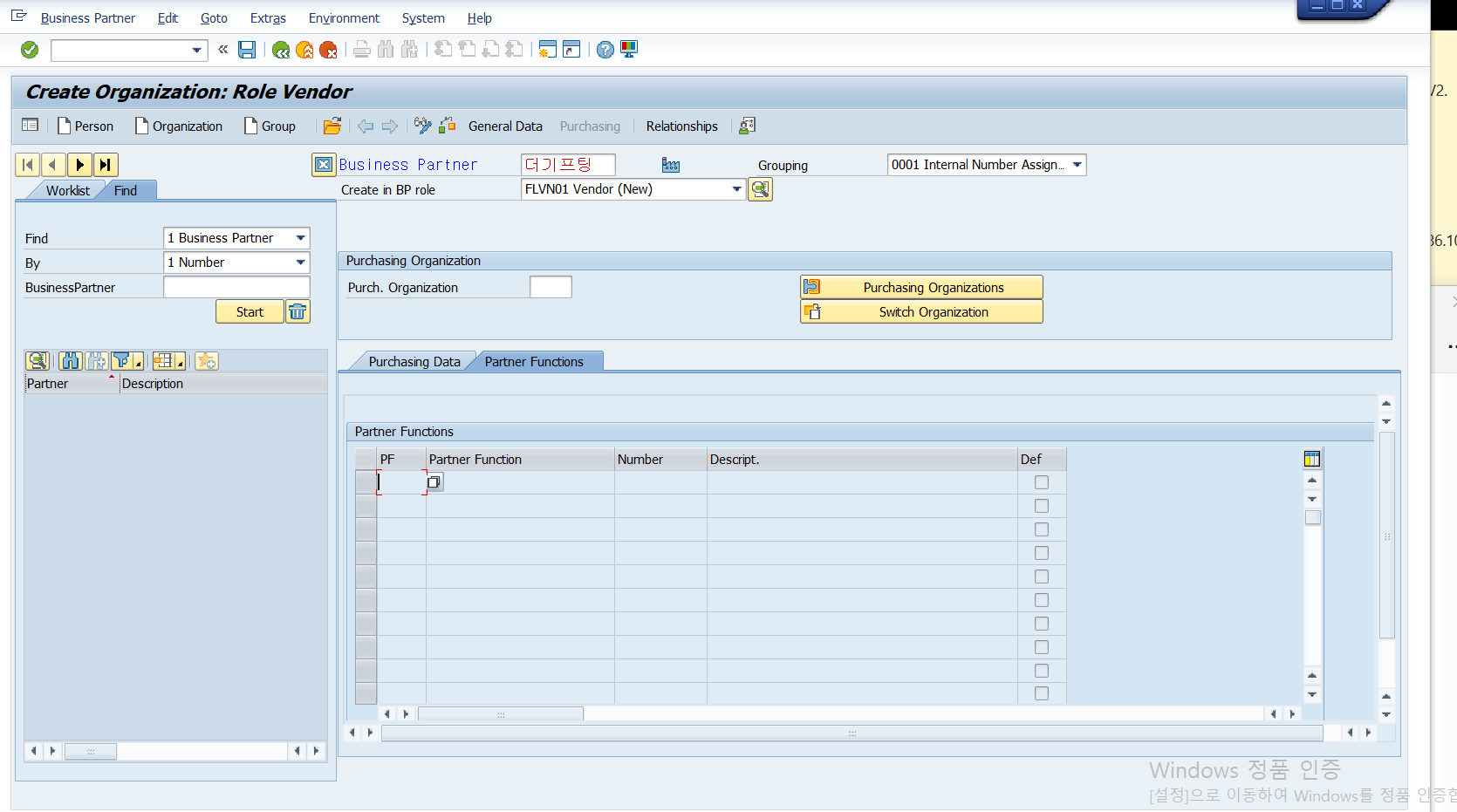 accounting data 입력시 에는 'change in BP role'에서 FI VENDOR로 변경해야함.