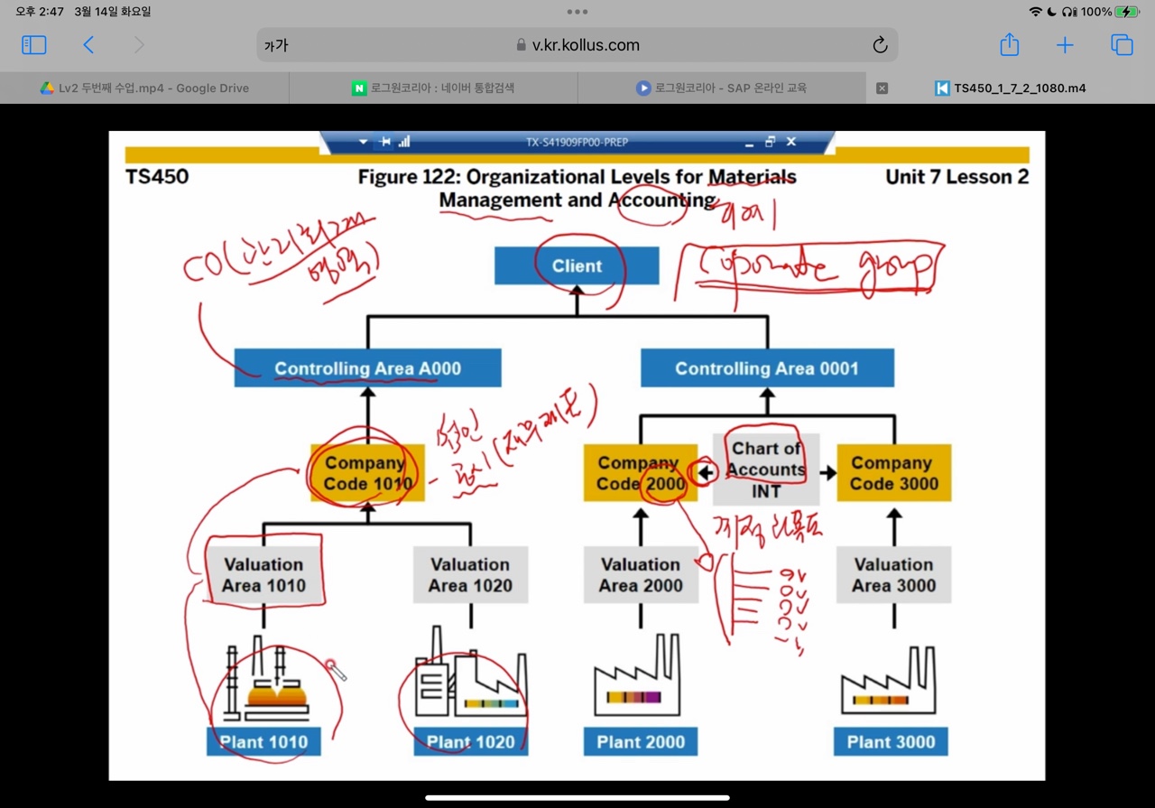- company code에 chart of account(계정 과목표, G/L계정 LIST)를 assign함.
