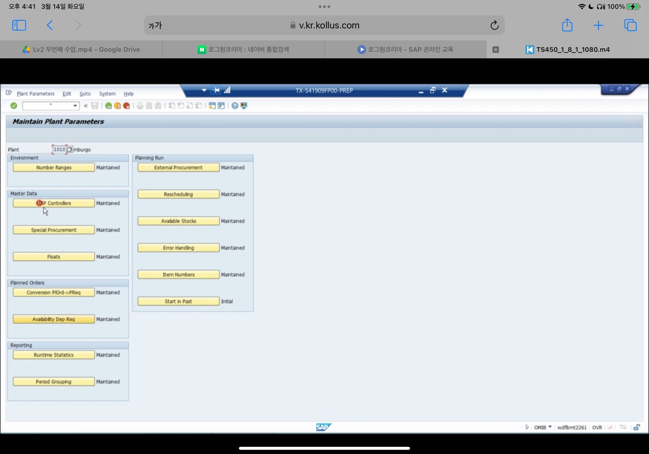 plant parameters : MRP를 실행하기 위해서 결과값에 영향을 주는 인자값을 설정하는 것이다 => PLANT LEVEL임
