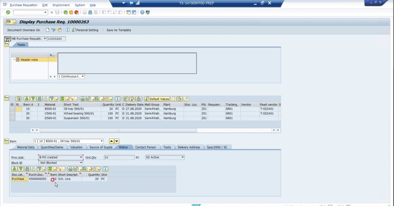 - create a purchase order with reference to a purchase requisition using the advanced transaction(new transaction) ME21N