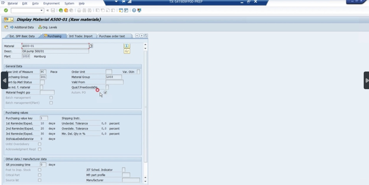 material master상 해당 자재에 'automatic purchase order'가 체크 되어 있는지