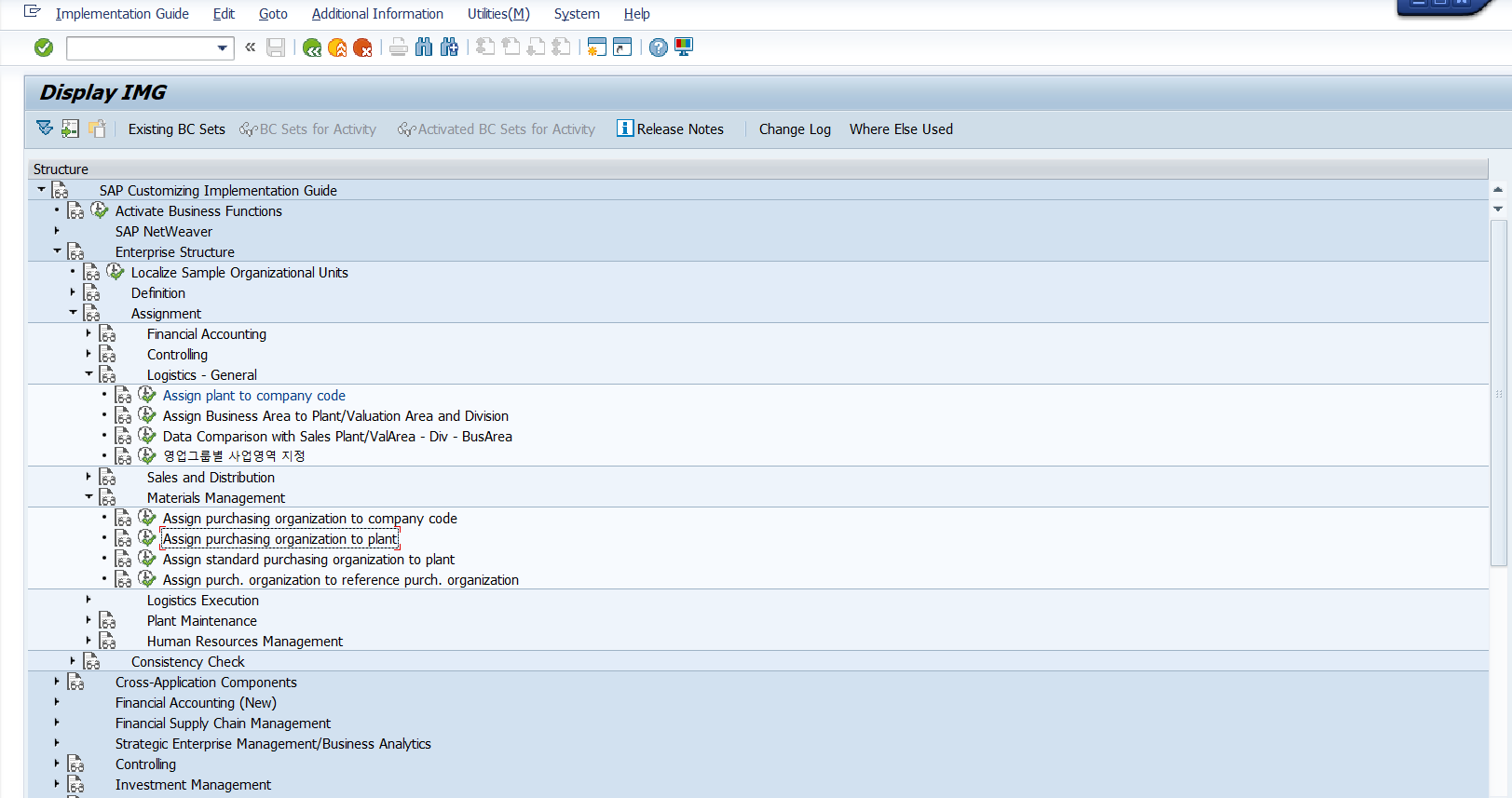 Purchasing org는 plant와 반드시 연결(assign)되어 있어야 하나 company code와는 assign(연결)되어 있지 않아도 됨 -> 왜냐면 plant에 이미 company code가 연결 되어 있기 때문에. 또한 purchasing org는 반드시 하나의 company code와 연결 되어있어야한다