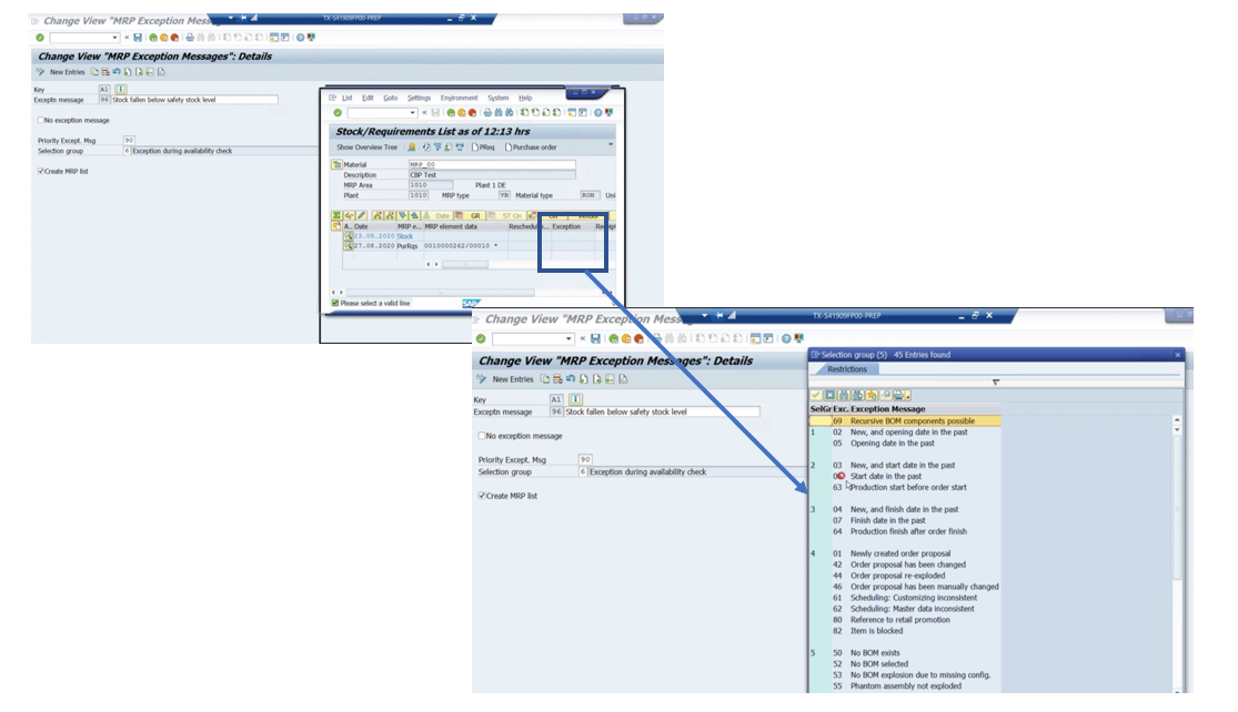 - creating of a MRP list dependent on the exception messages that appeared.