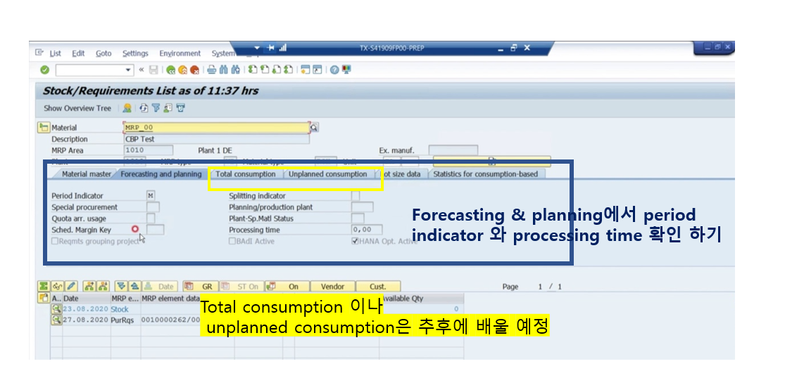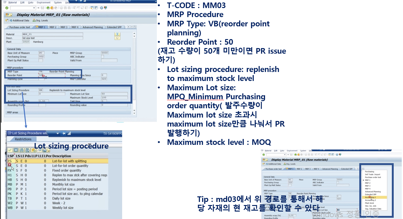 - Different Between curren stock/ requitements list and MRP list(가장 중요한 내용임)