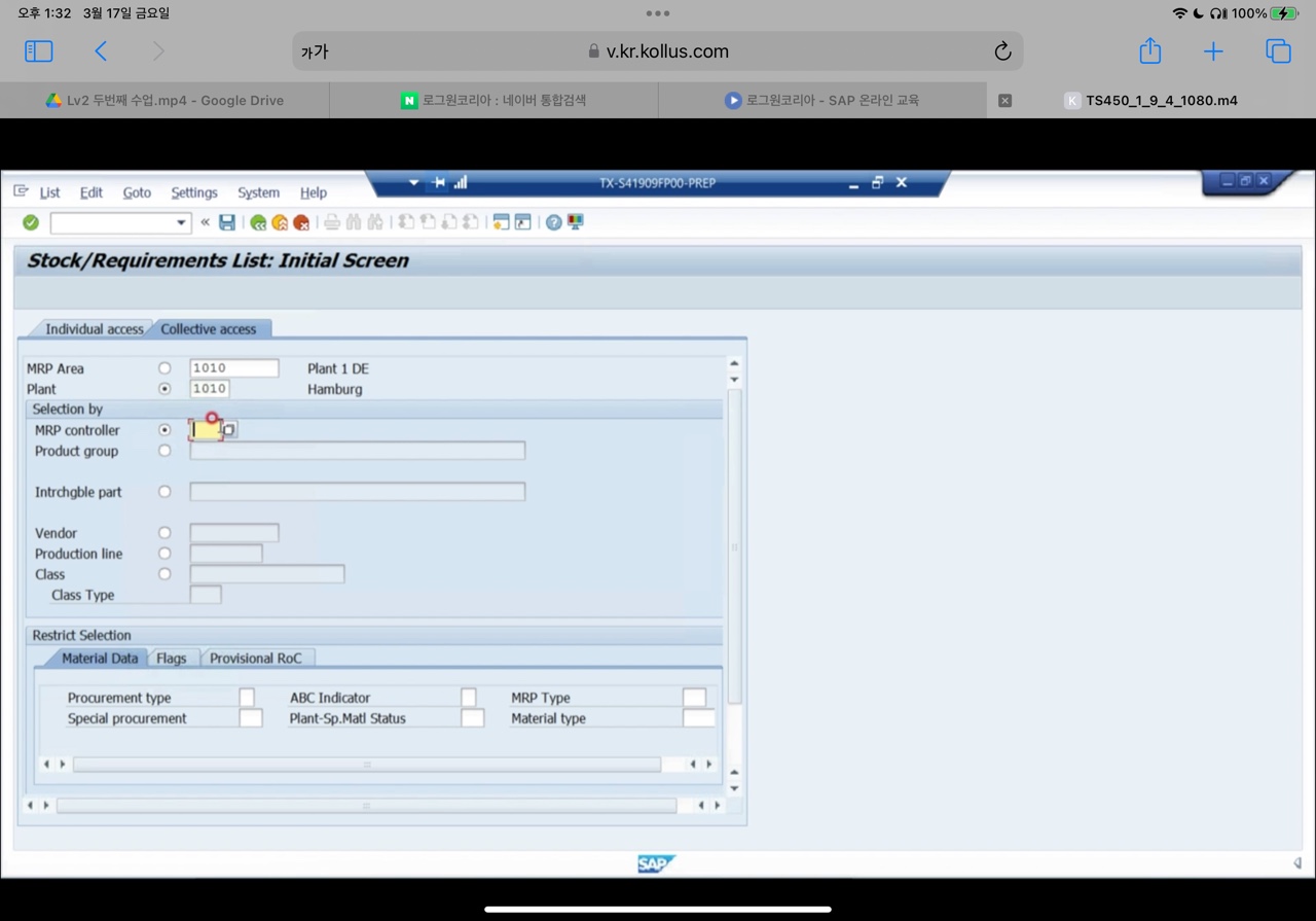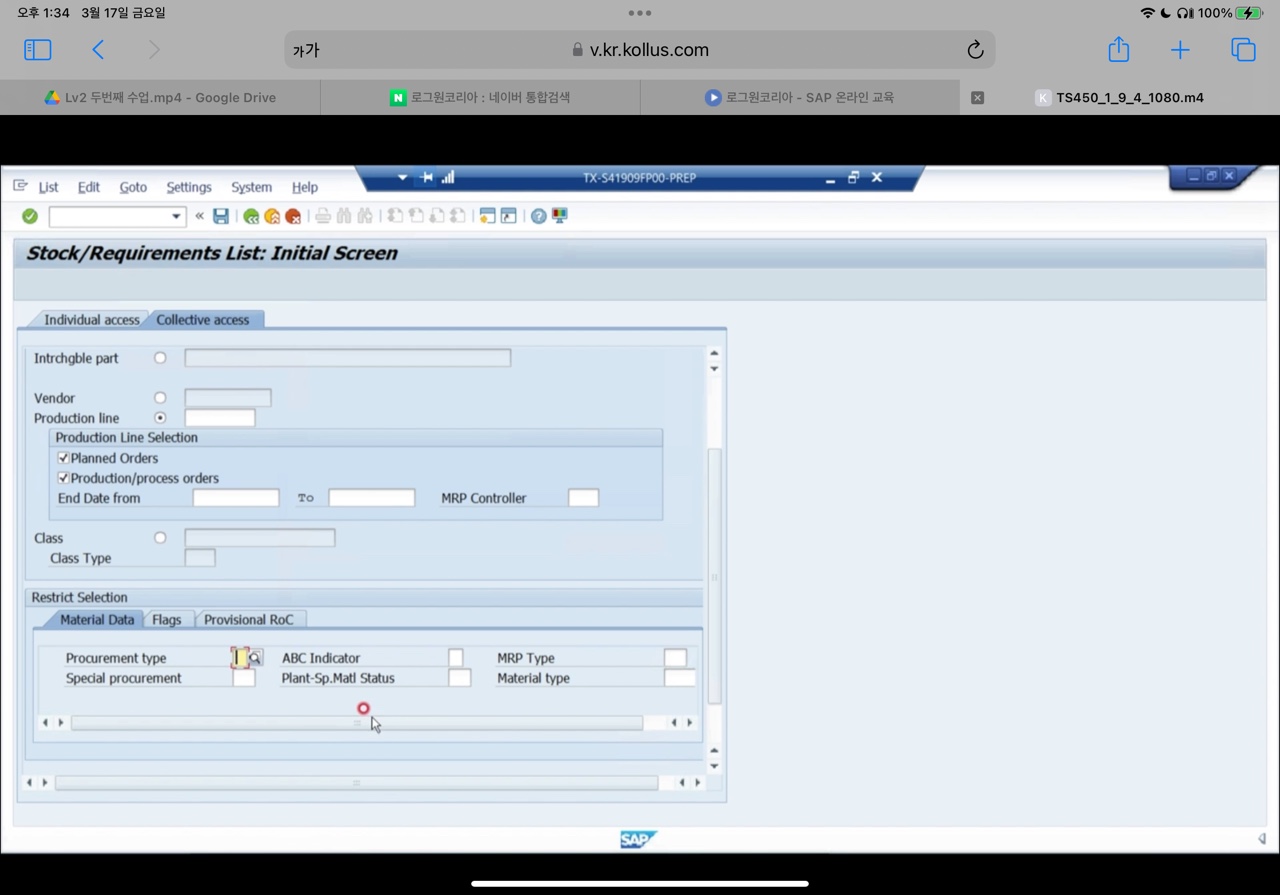 collective access : plant ,MRP controller, opening date, procurement type에 따라 collective한 data를 conversion해서 볼 수 있다.