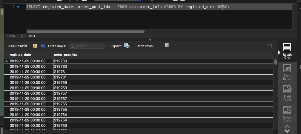 SELECT registed_date, order_post_idx FROM scm.order_info ORDER BY registed_date DESC, order_post_idx ASC;