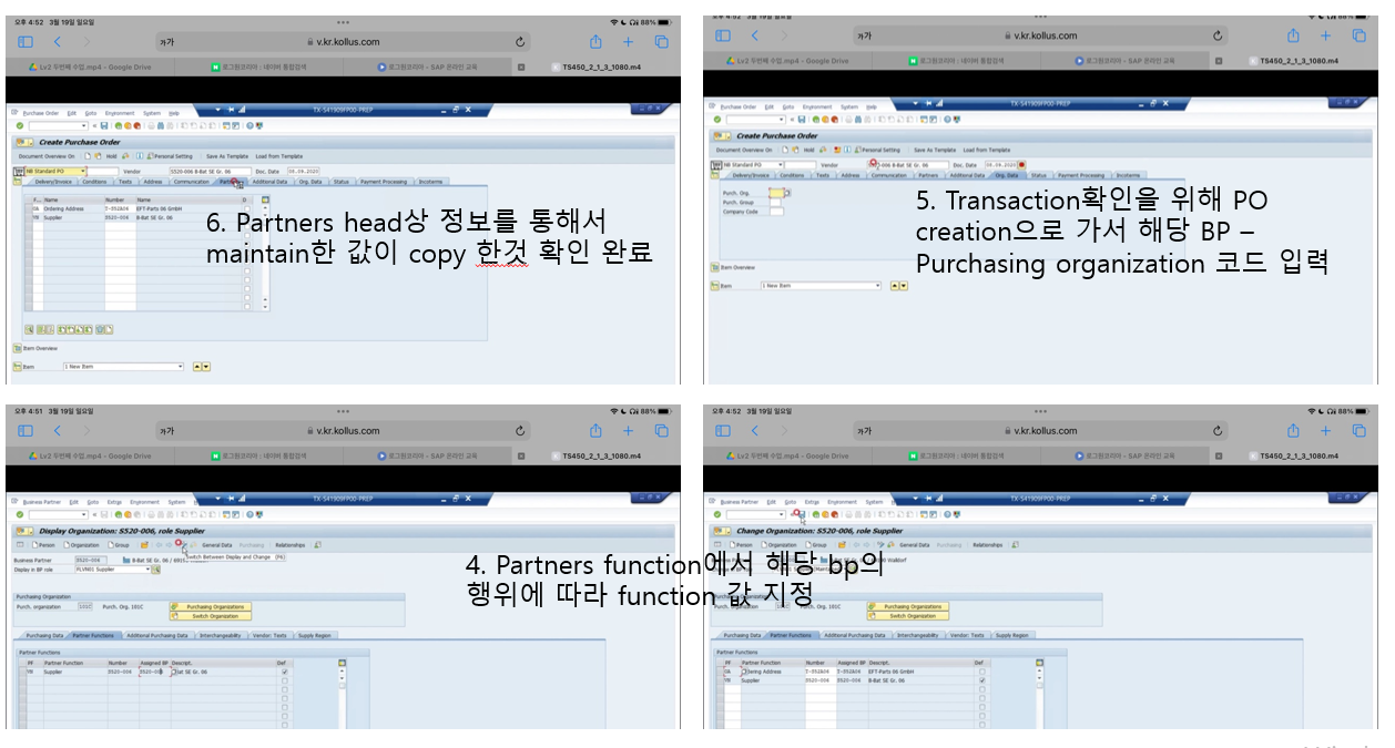 - practical practice - BP마스터에 PARTNER FUNCTION과 관련된 내용으로 BP 마스터에서 PARTNER FUNCTION을 Maintain해보고 configuration을 통해서 어떤 논리로 작동하는 지 확인 해봄