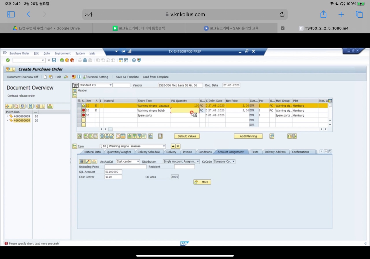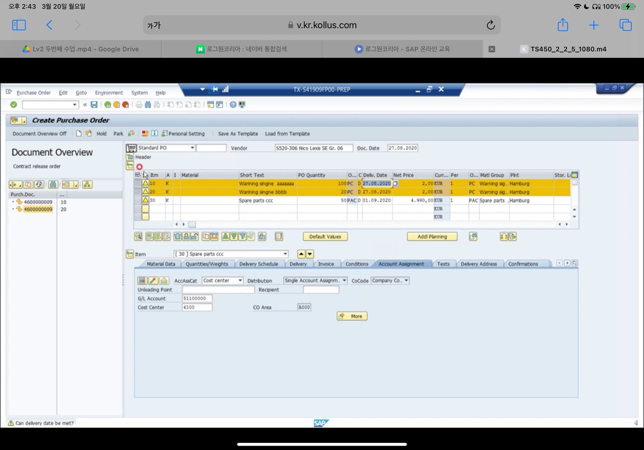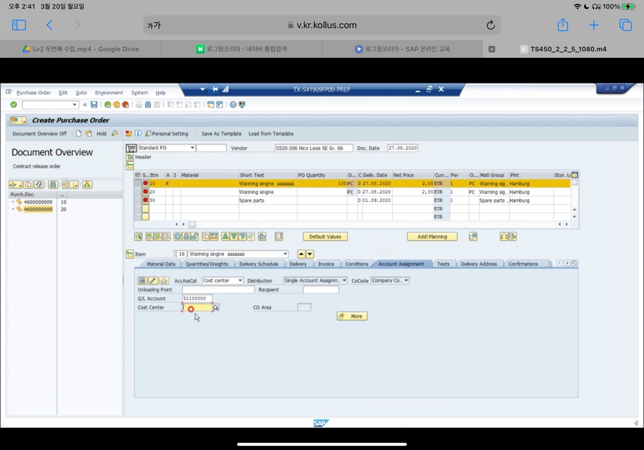 - consumable material에서는 ACC Assignment 반드시 기재해야함
