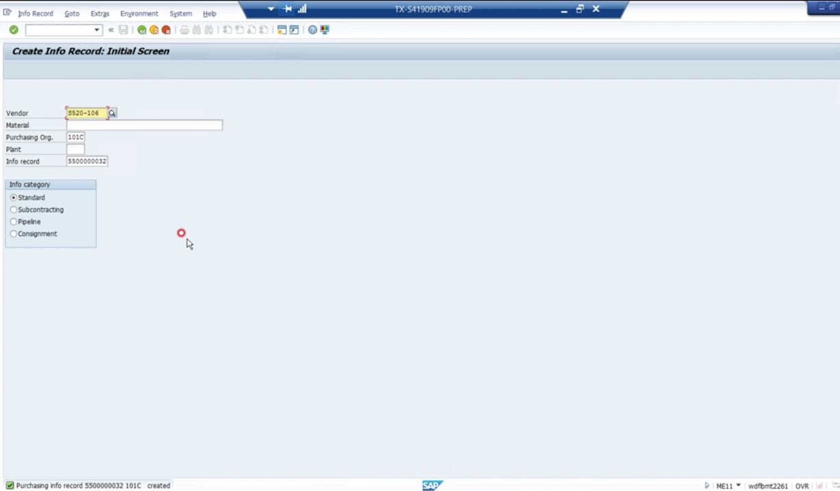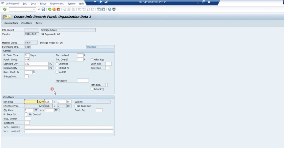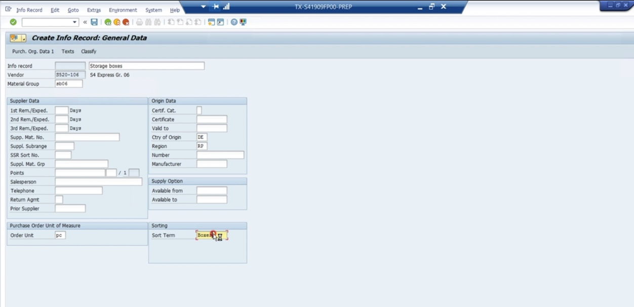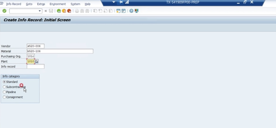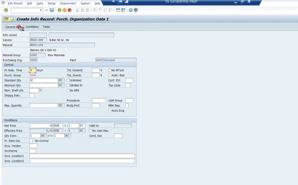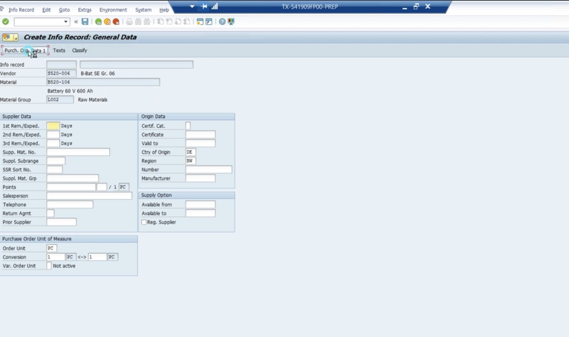 - 그런 경우의 동일한 자재라도 정보가 다름 - 이런 combination 데이터를 관리 하는 것이 info record라고 보면 됨