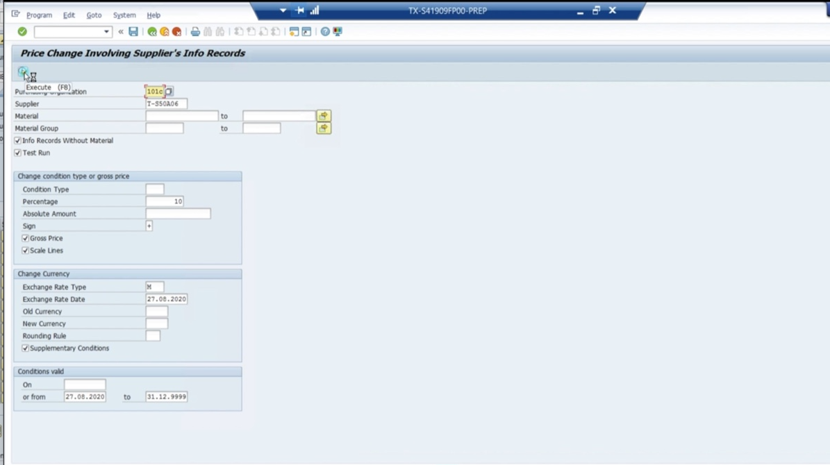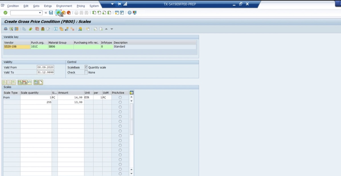 - single infor record 하나가 아닌 multi infor record의 단가 정보를 한번에 변경하는 방법 확인