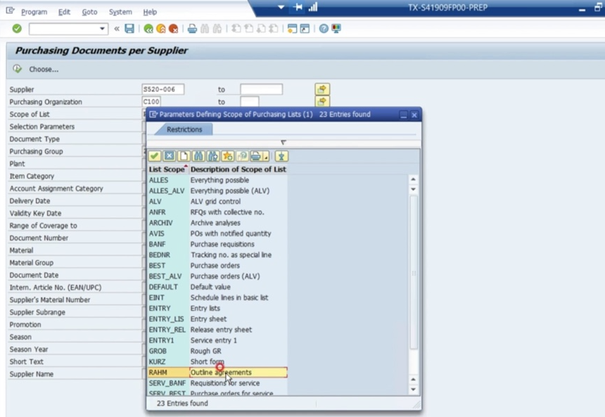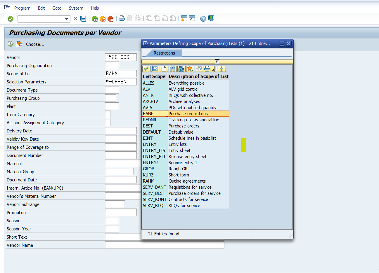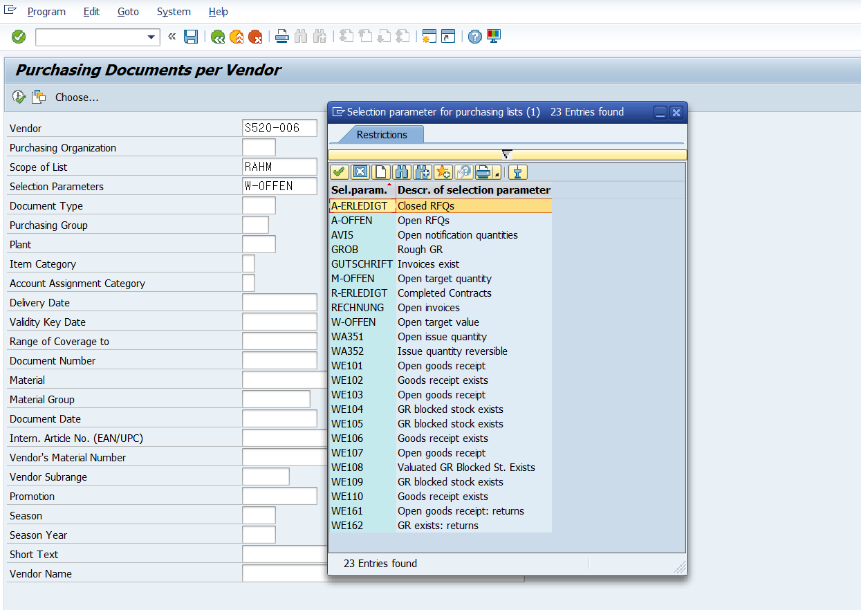 - figure 21: selection parameters - which purchasing documents are analyzed?