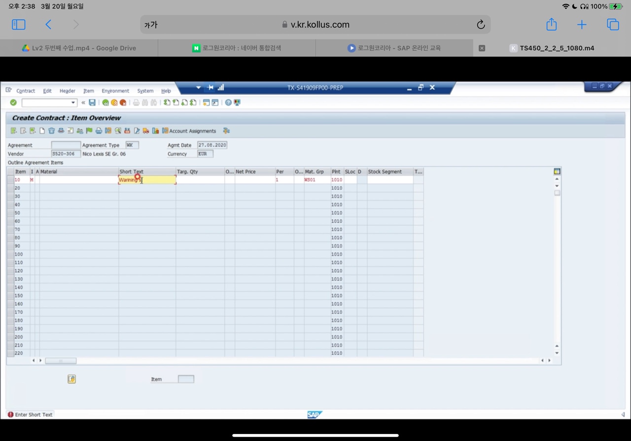 - short text, short term, price는 무조건 기재 해야함. 왜냐면 보통 material record에서 끌고 오는데, material group에서 group만 끌고 오는 거니까 수기로 기재해줘야 함.