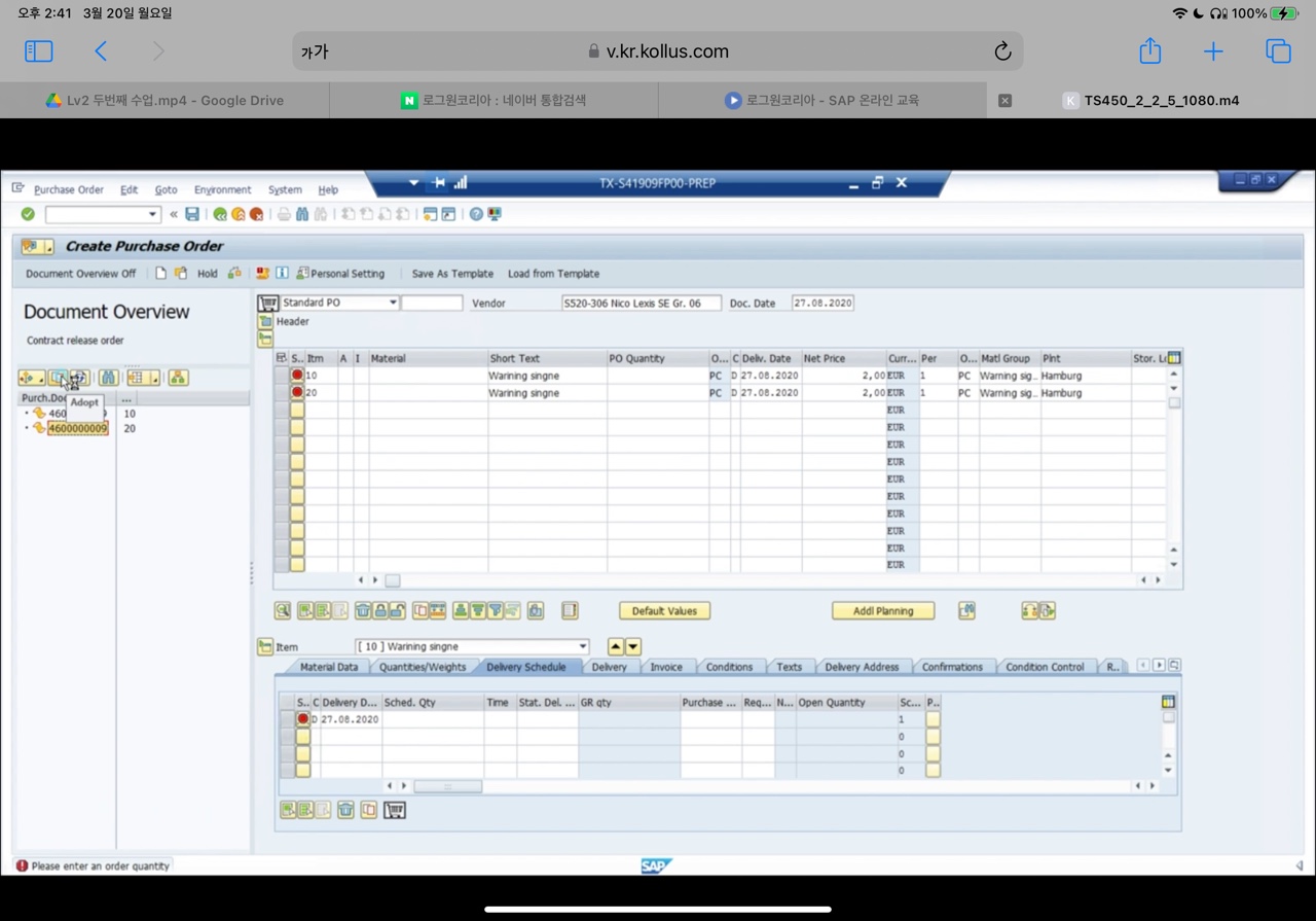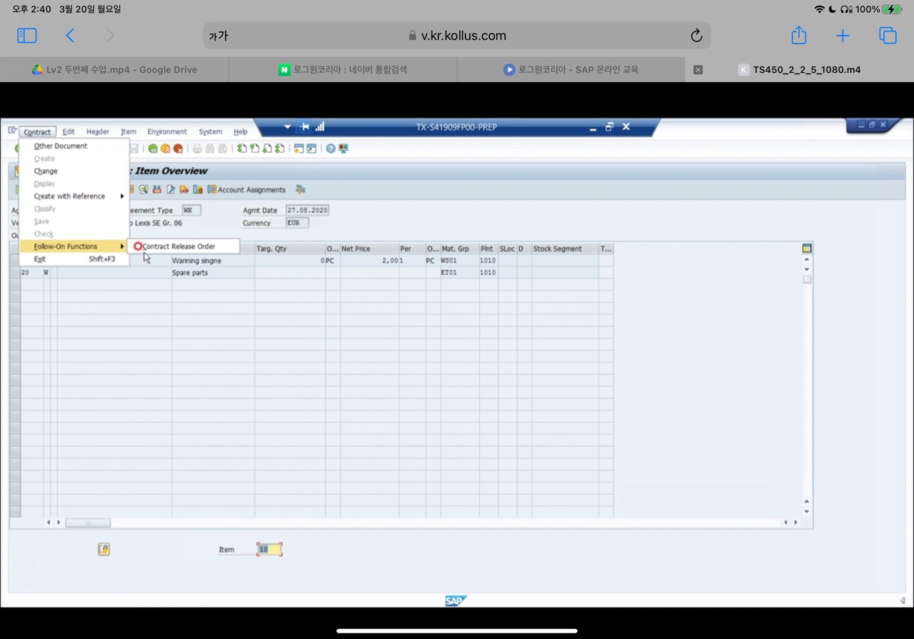 - contract의 후속 프로세스가 po 발행임 -contract release order