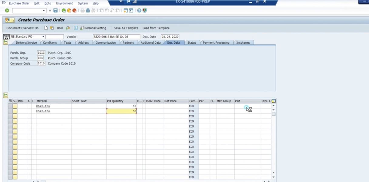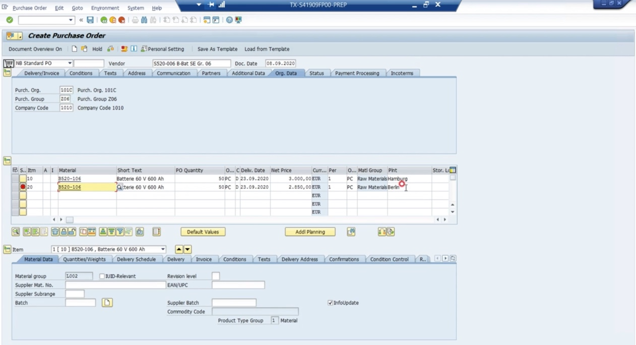 - 1010,1020번 plant가 아닌 다른 plant 번호 혹은 plant번호가 아예 기재가 안된 상태에서 po 생성 시 왼쪽 값을 따라가게 되어 있음(운송비 5% 조건)