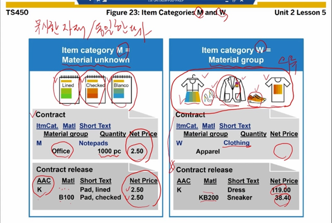 - material group- 일반적으로 contract에서만 사용함, 실전에서는 잘 사용안하지만 시험에는 잘 나옴