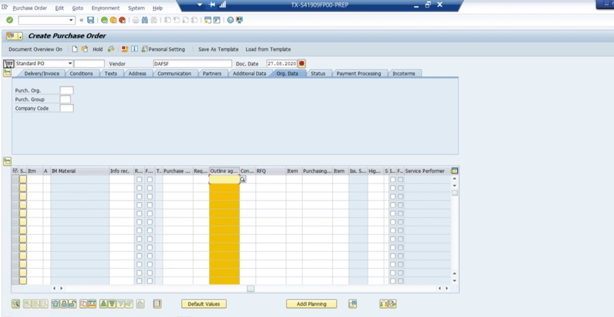 - Creating Scheduling Agreements Without Release Document-Scheduling Agreements - outline agreemnet
