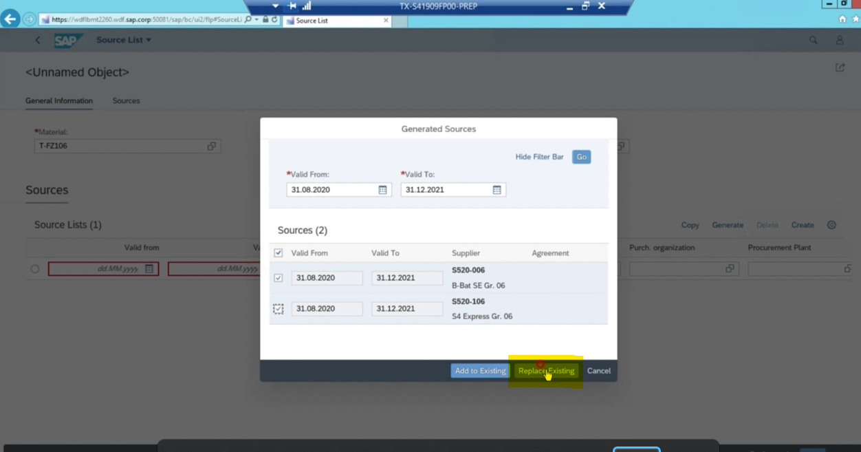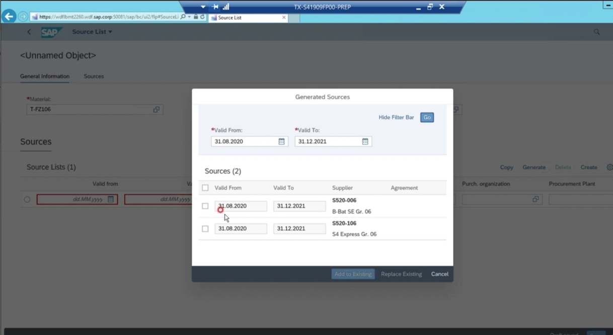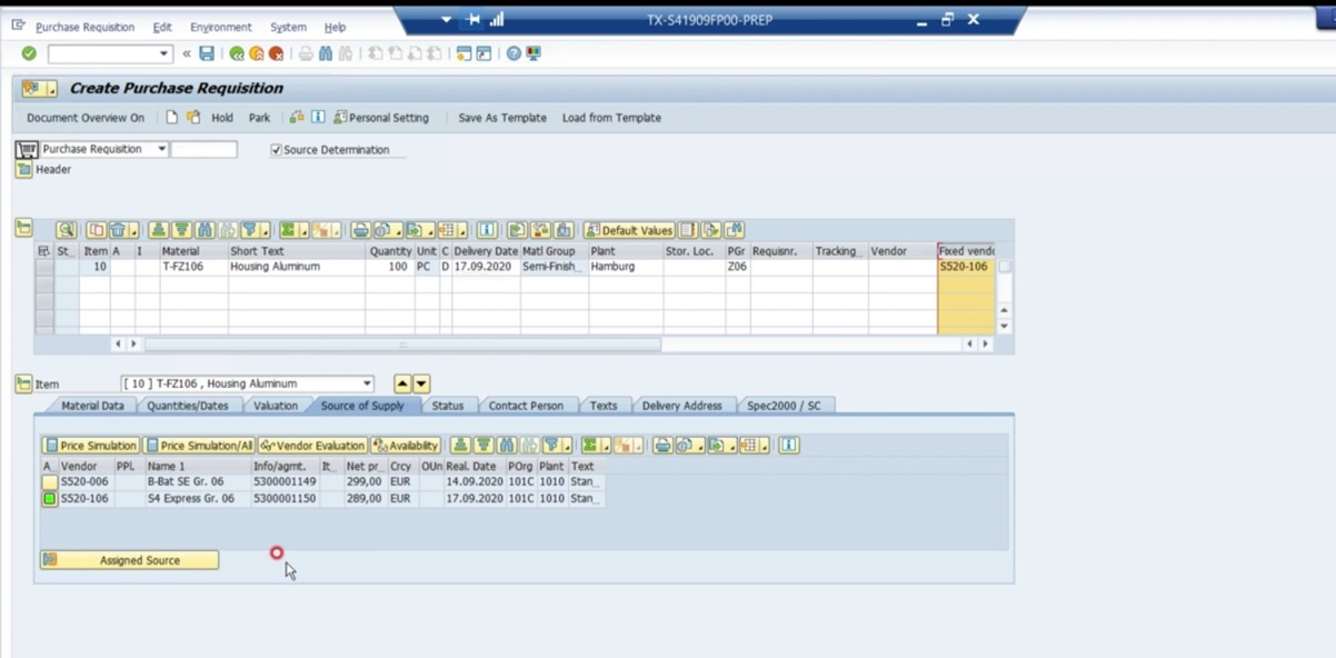 - source list를 fiori에서 maintain하고 erp시스템에서 fixed vendor 확인 한 후에 pr 생성해보기
