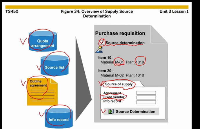 - source of supply에서 source determination을 선택하면 아래 document를 참고하여 vendor를 선택함 (조건을 충족하는 vendor를 source of supply상 fixed vendor로 proposal함) -> source determination의 원리임