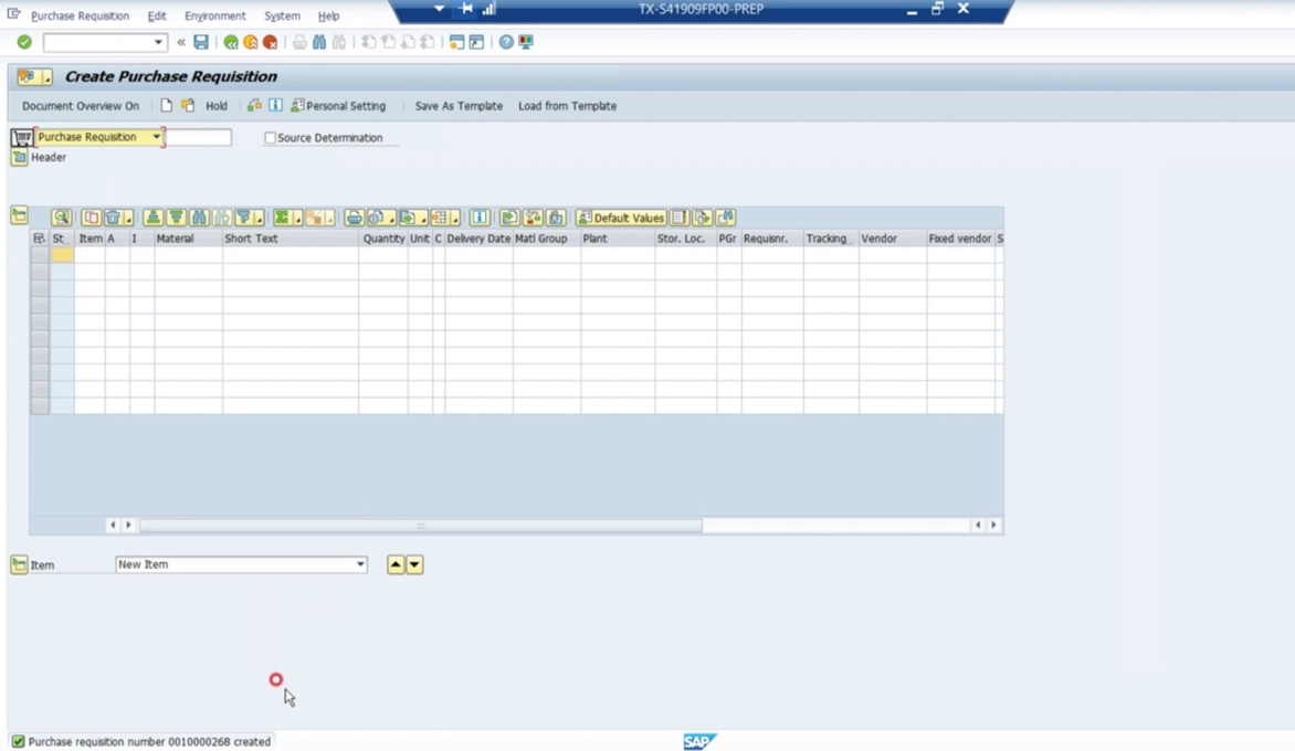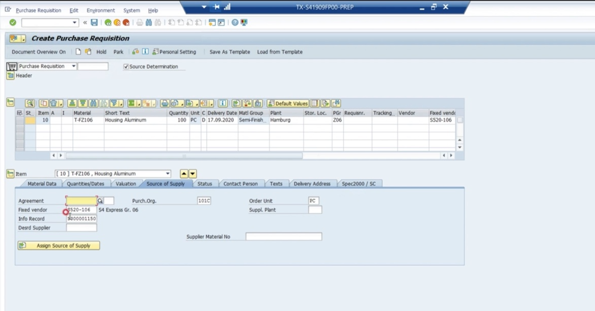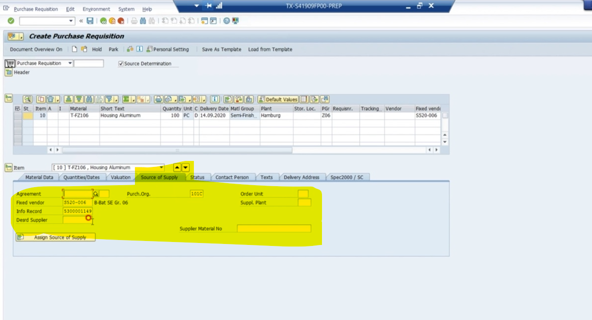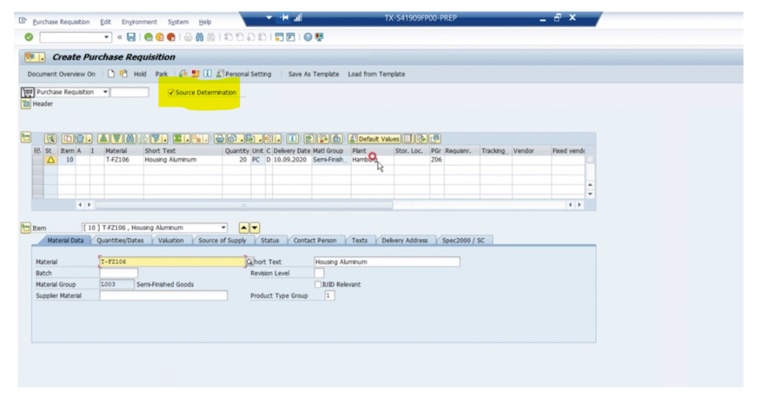 - PR을 manual로 생성 시 'source determination'에 대한 체크 박스를 선택해야 source determination에 있는 데이터를 key in 할 수 있음