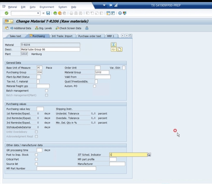 - material indicator - JIT indicator는 material master에 purchsaing view 혹은 MRP view에 해당 indicator 필드가 있음