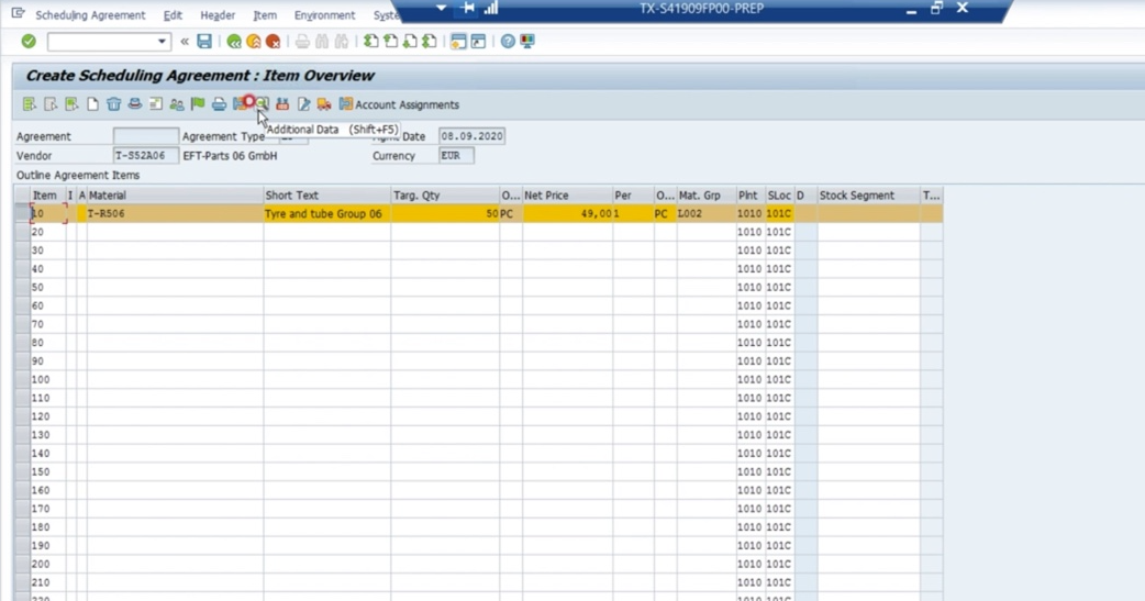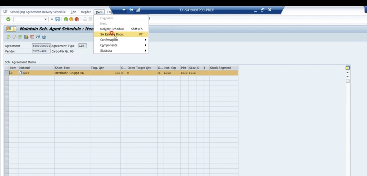 - contract와의 차이는 schduling agreements는 unknown material을 허용하지 않음 (PO 발행시에도 마찬가지)