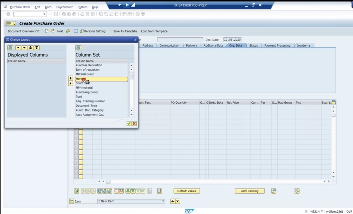 - in the personal settings for the enjoy transaction ME21N