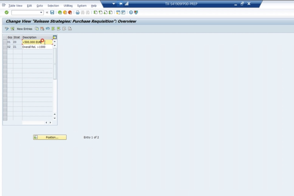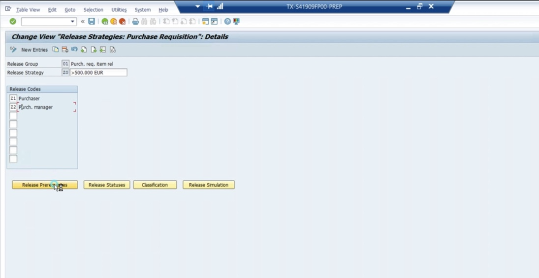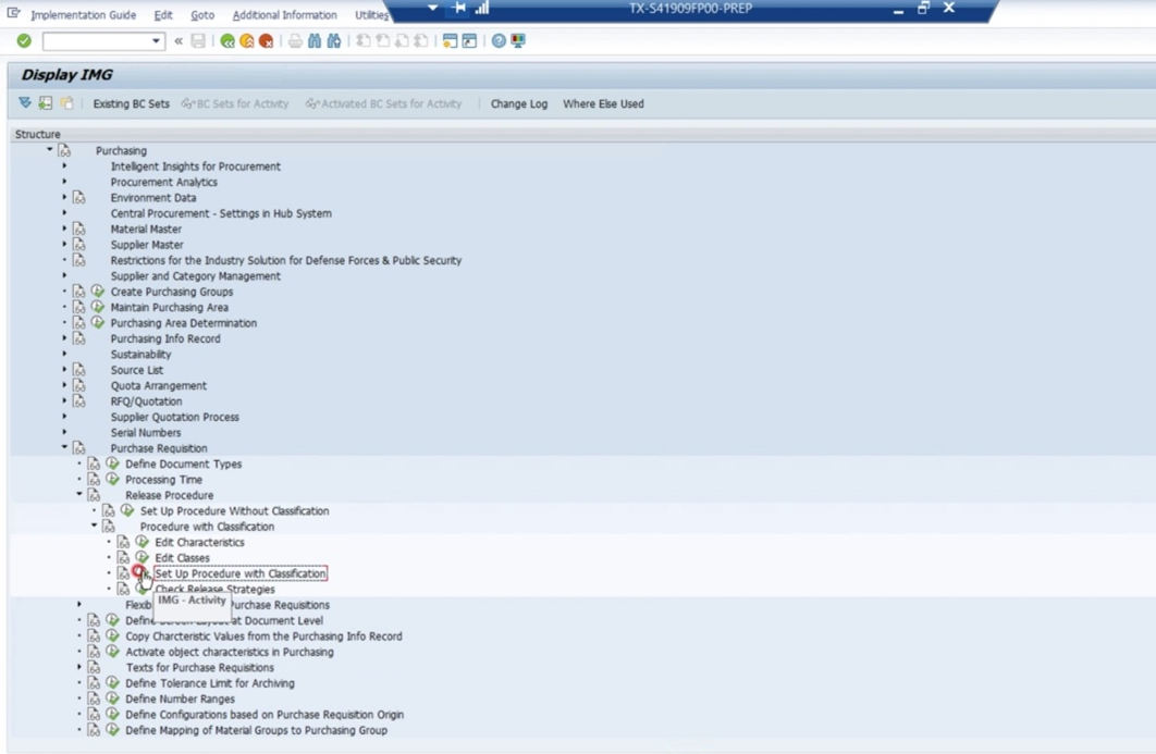 - 경로: mm -> purchasing -> PR -> release procedure -> procedure with classification -> set up procedure with classification