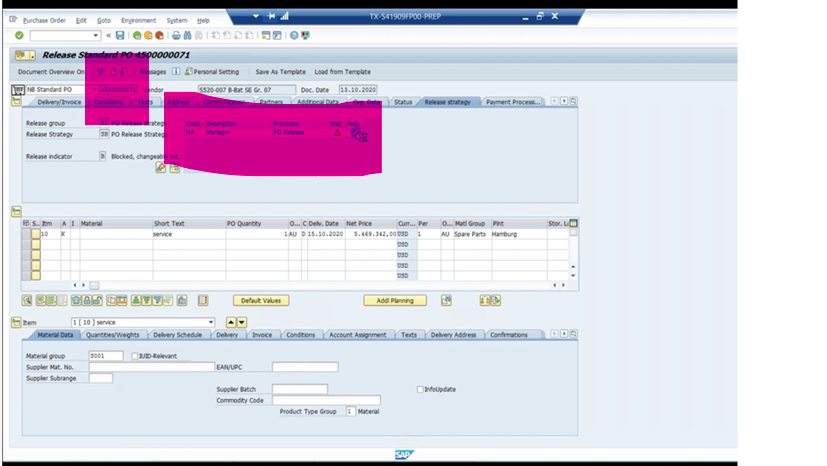 practical practice 1 (release strategy탭이 생긴 PO 승인하기, PR이나 PO나 release category가 생긴 것을 승인하는 프로세스는 동일함_diplay에서 승인 선택하면 됨. configuration 공부에 좀더 집중해보자)