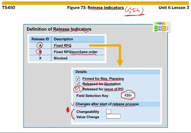 - release strategy, release group, release code, release indicator가 각각 무엇을 의미하는 지 이해하고 configure할 수 있는 방법을 알아야 함( 정말 중요한 포인트임)