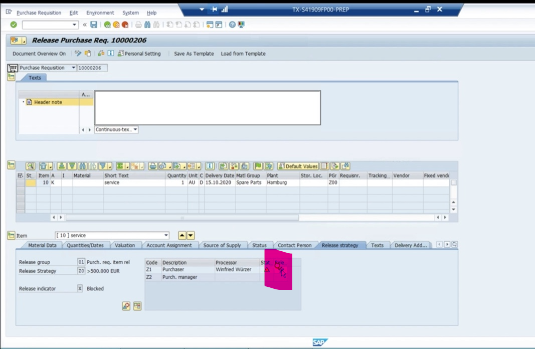 - 절차: pr생성 -> po생성 안되는 거 확인 -> pr display통해서 pr 승인 -> po 생성