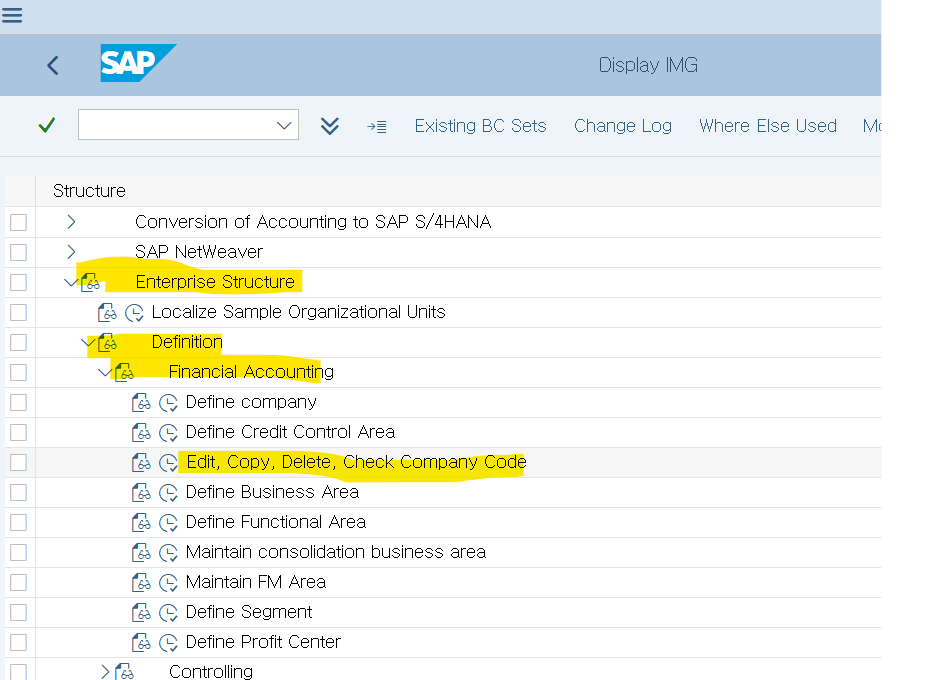 - Company Code 생성(보통 레퍼런스 카피 기능을 이용하여 생성하게 된다.)