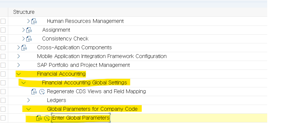 경로: IMG > Financial Accounting Global Settings> Global Parameters for Company Code> Enter Global Parameters