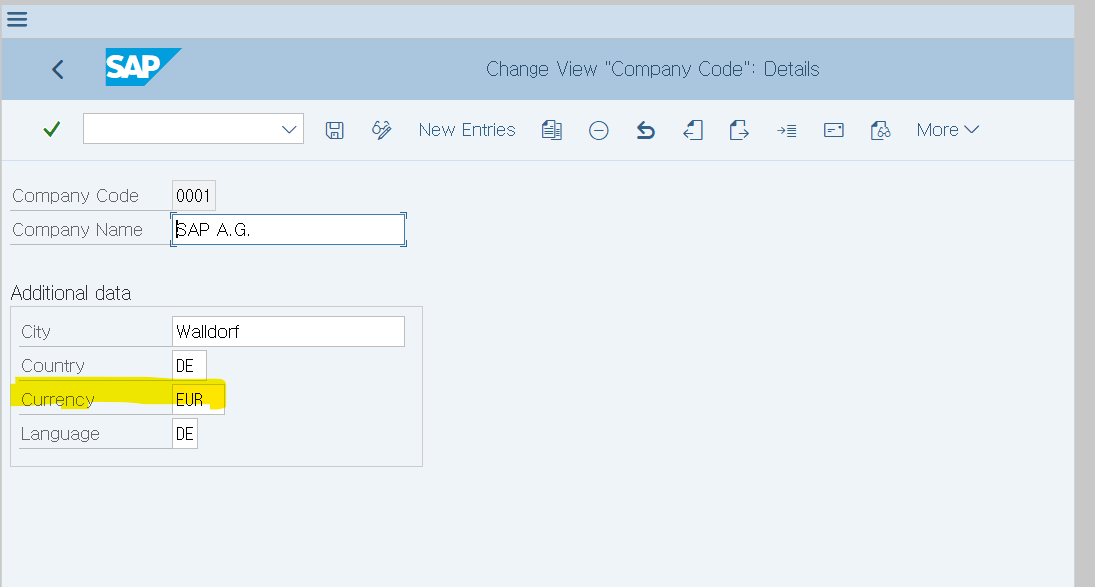 - Company Code 생성(보통 레퍼런스 카피 기능을 이용하여 생성하게 된다.)