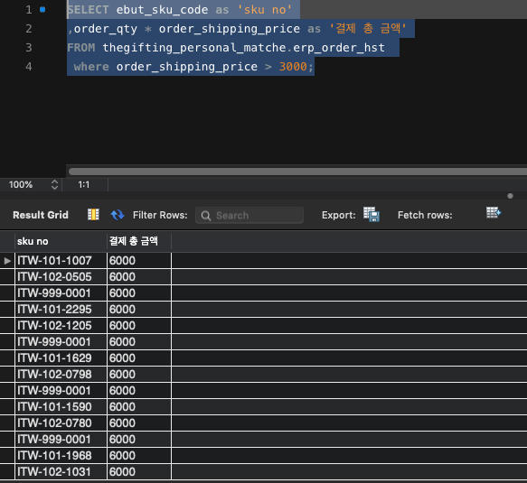 ,order_qty as '주문수량' ,order_shipping_price as '결제 금액'