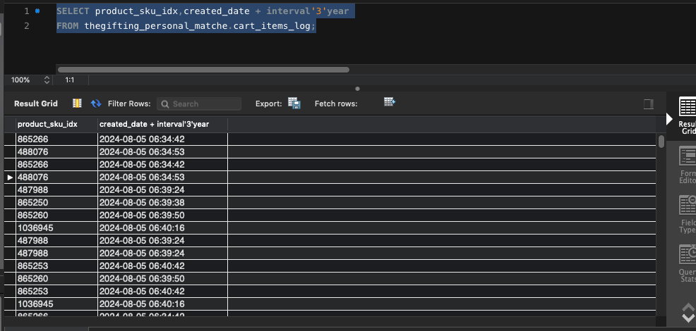 SELECT product_sku_idx,created_date + interval'3'year