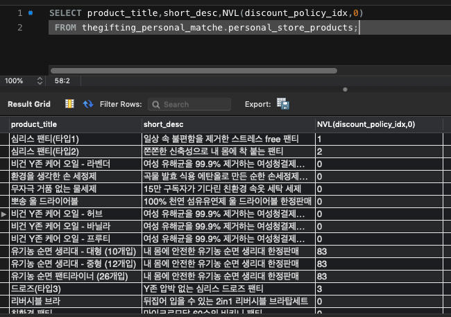 SELECT product_title,short_desc,NVL(discount_policy_idx,0)