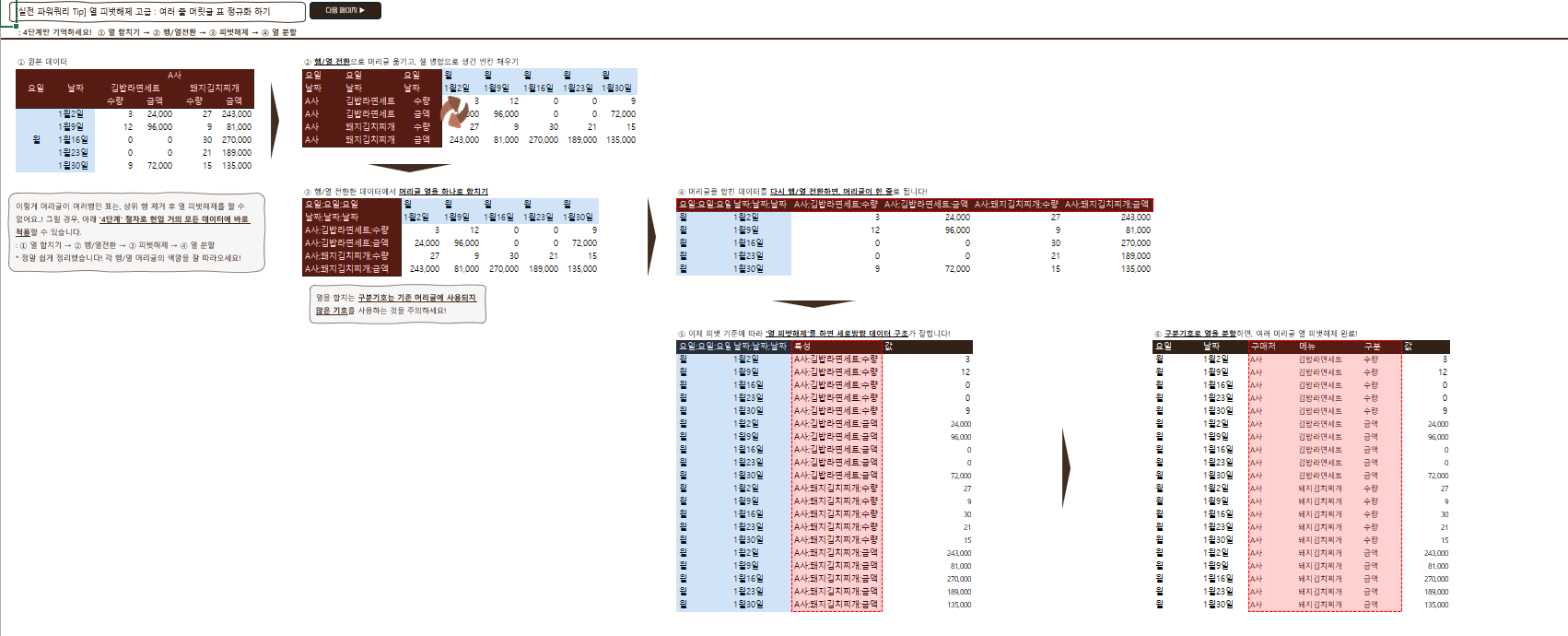 열/행 바꾸기 와 열 피벗해제의 차이점