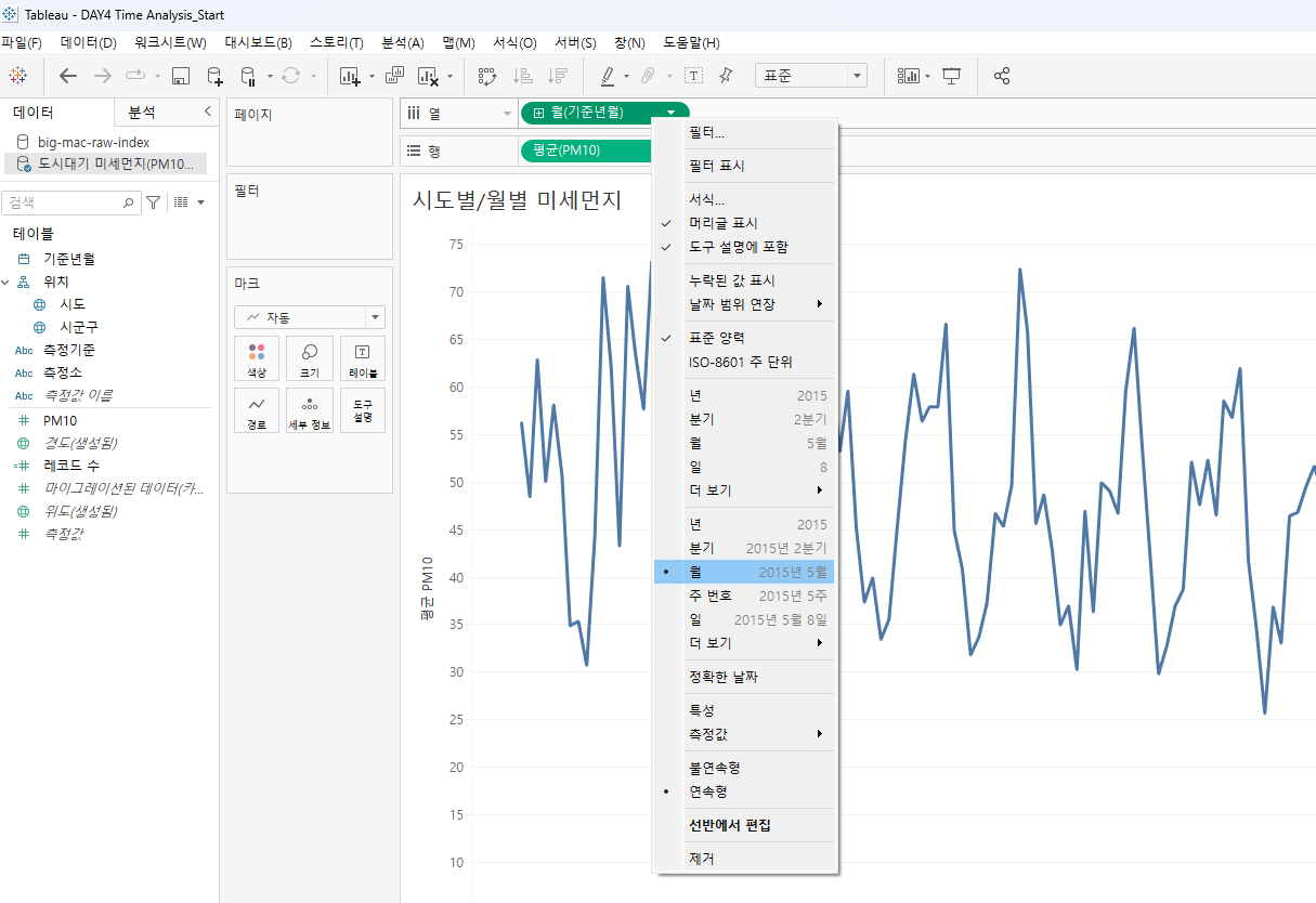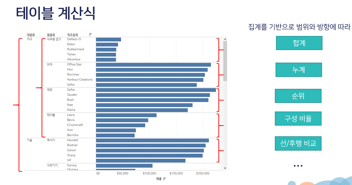 태블로에서는 행데이터를 가지고 차원에 따라 집계한 다음에 분석을 하게됨.