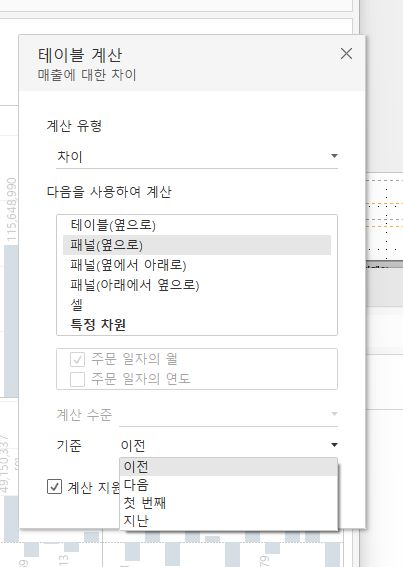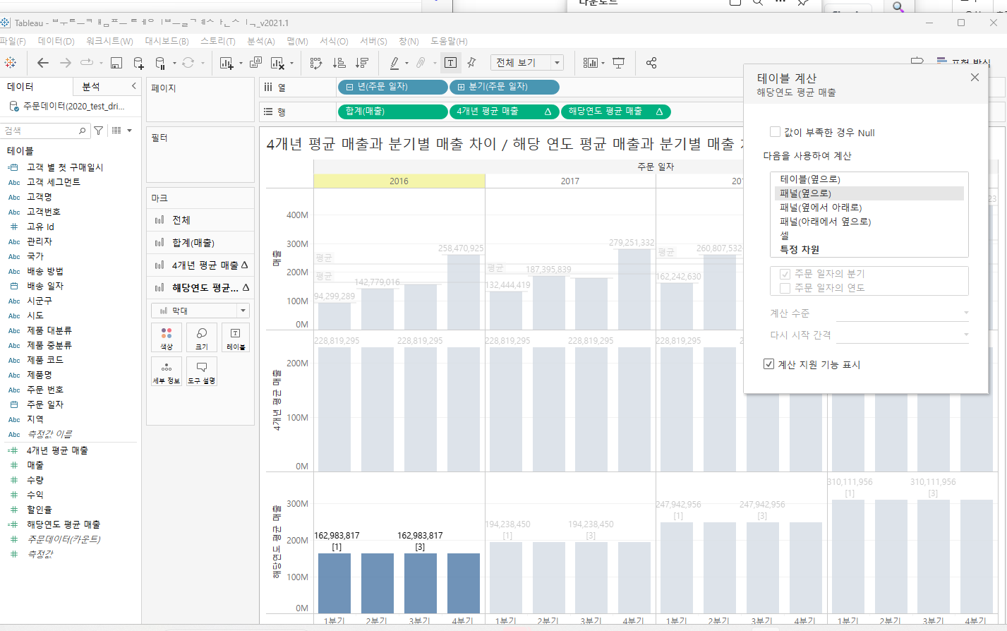 window_avg(sum(매출)) -> 이걸 복제해서 해당 연도 매출