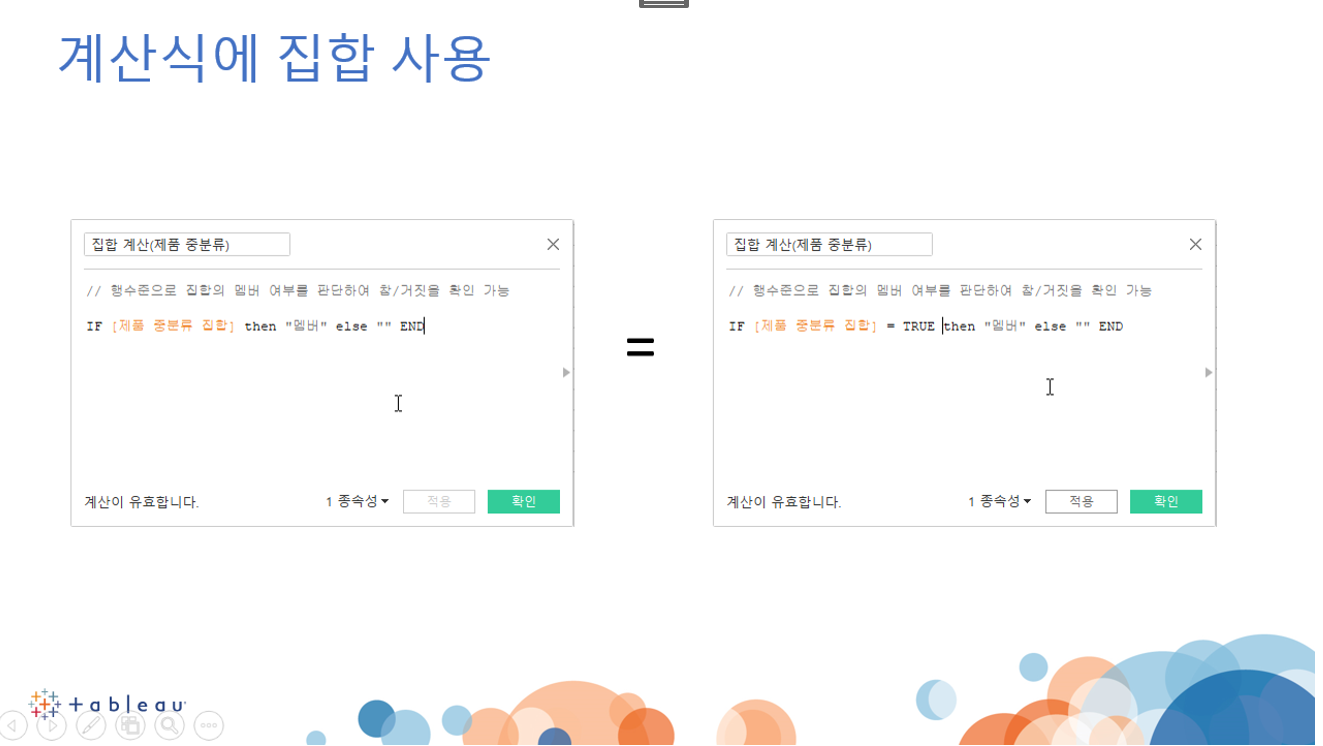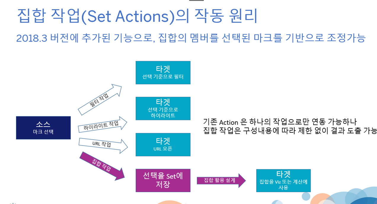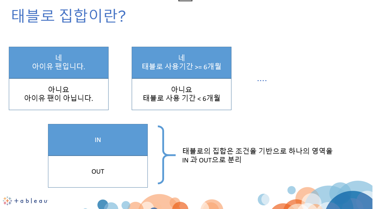 필터는 해당하는 것만 구분하는 거라면, 집합은 조건에 해당하지 않는 것도 분석에 쓸 수 있음.
