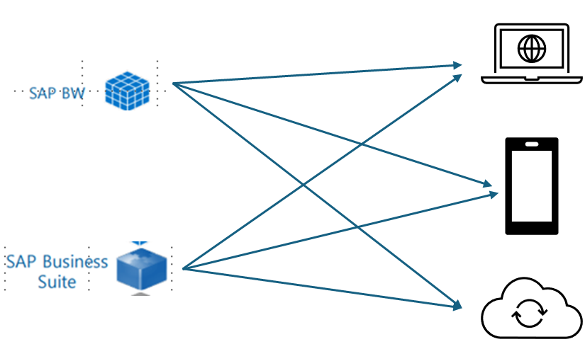 SAP로 부터 동일한 데이터를 가져가는 데도 여려 단말마다 각각의 인터페이스를 만들어 쓰고 있음