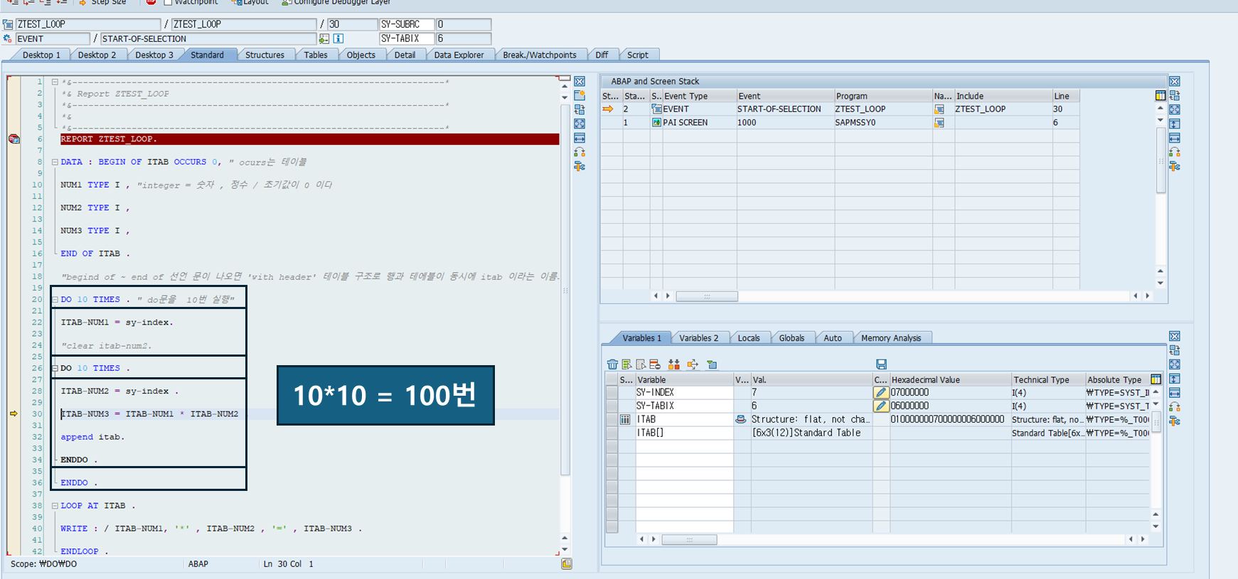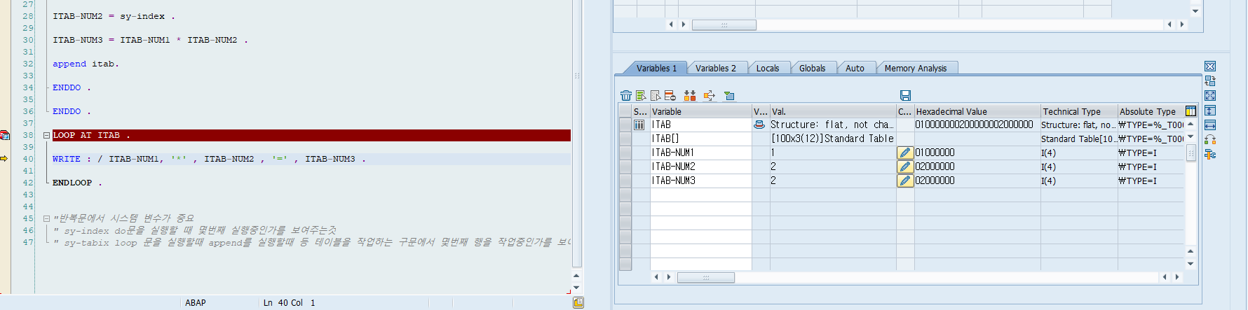 - sy-index : do문 실행할 때 몇번째 실행 중인지