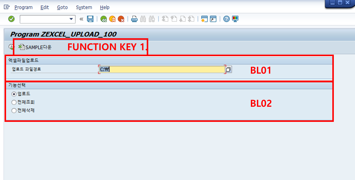 하나의 프로그램 : ZEXCEL_UPLOAD_100