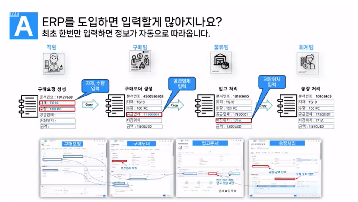 01-05.  SAP Cloud ERP를 도입하면 입력할게 많아지나요? 프로세스에 따라 데이터 연동 됨. 카피를 통해 연계. ( 발주 -> 입고문서 -> 인보이스 등)