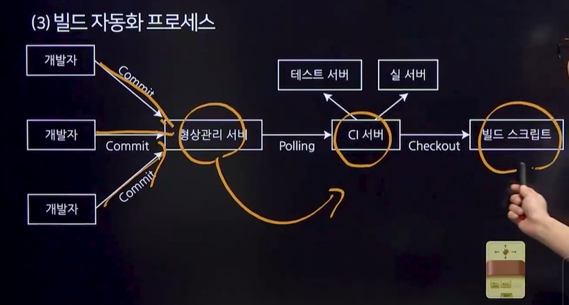 1) 빌드 : 개발자가 소스코드를 저장소에 커밋하면, 변경 사항이 통합 환경에서 자동으로 통합된다.