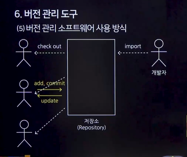 1) 공유 폴더 방식 : 개발자들이 여러 명이 있으면 퇴근 전에 한곳에 모아 놓고 한사람이 그걸 검토관리 하는 것/ 파일을 공유 폴더에 저장하고 담당자가 에러 체크와 정상 작동 여부를 확인한다/ 매우 기본적인 버전 관리 방식으로 복잡한 협업에는 한계가 있다