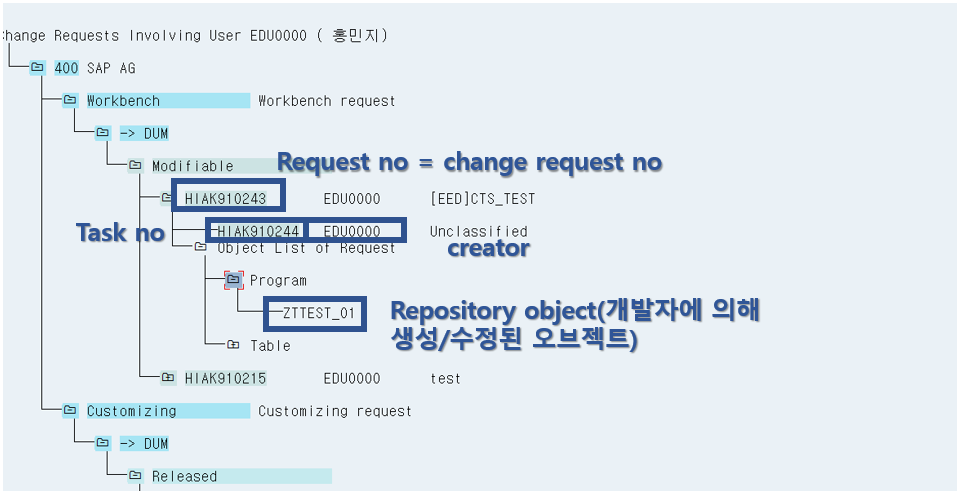 CTS는 Repository(프로그램, 테이블 등)의 버전을 관리 하여 구성 관리 tool로서의 역할도 수행하게 된다 (change request no = 소스 버전)